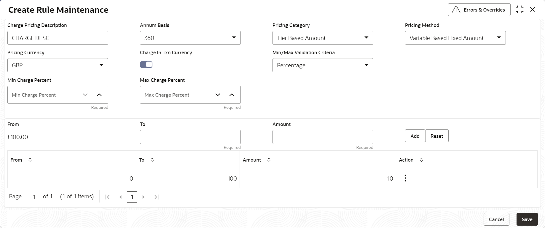 - Create Charge Rule Maintenance