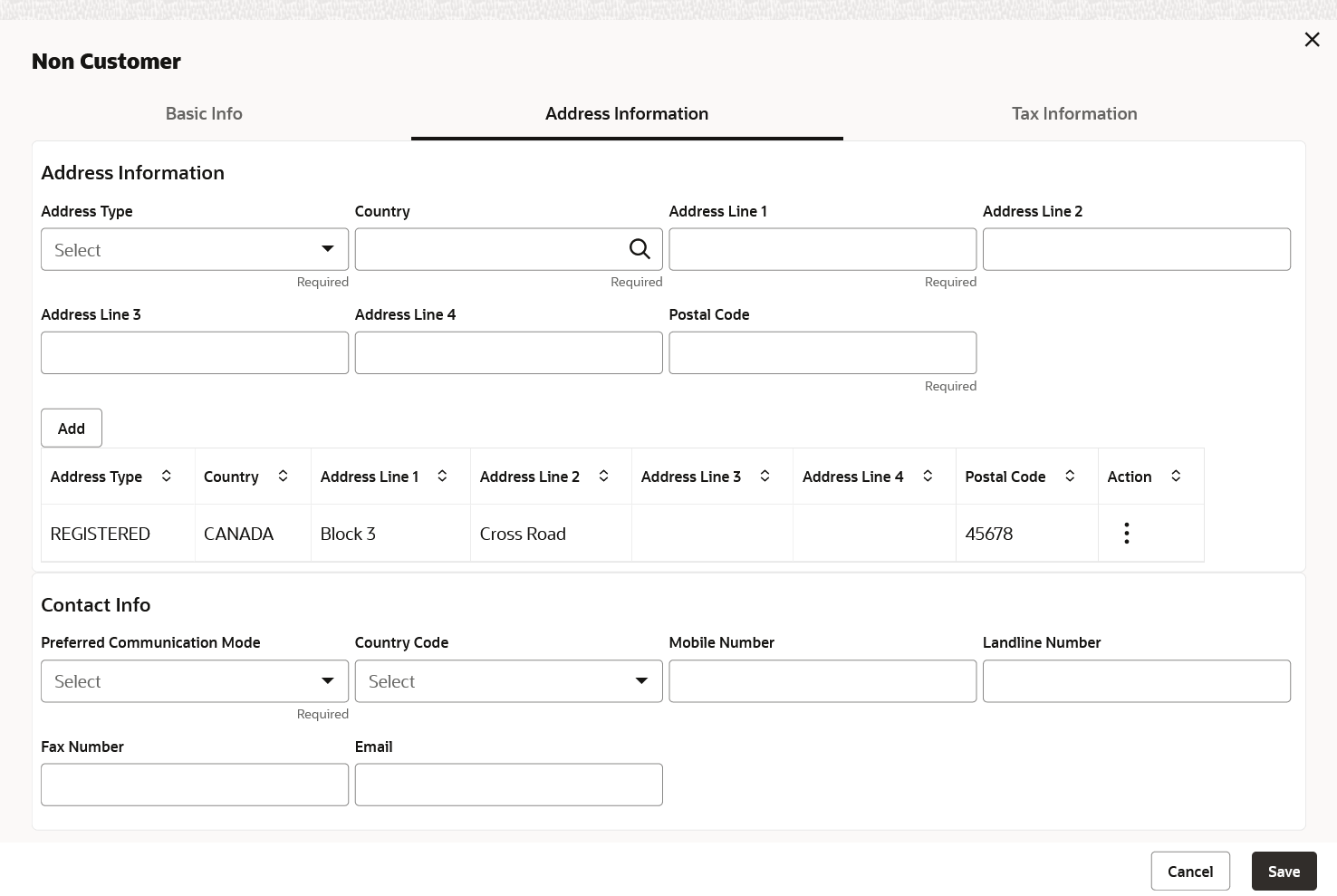 - In the Address Information tab, specify the address related information of the non-customer.