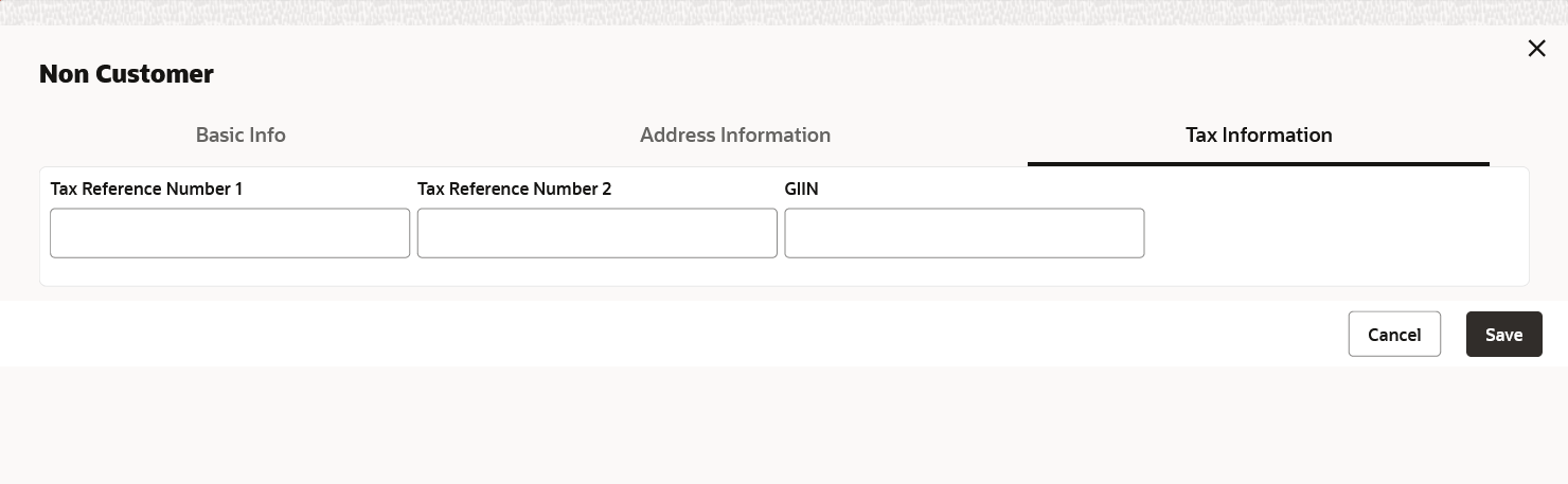 - In the Tax Information tab, specify the tax reference numbers and GIIN of the non-customer.