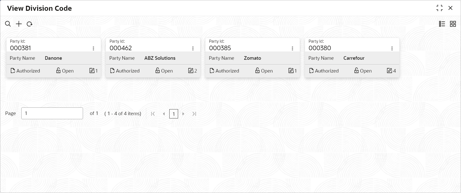 This topic describes the systematic instruction to view, modify, delete, or authorize the division code that have been created.