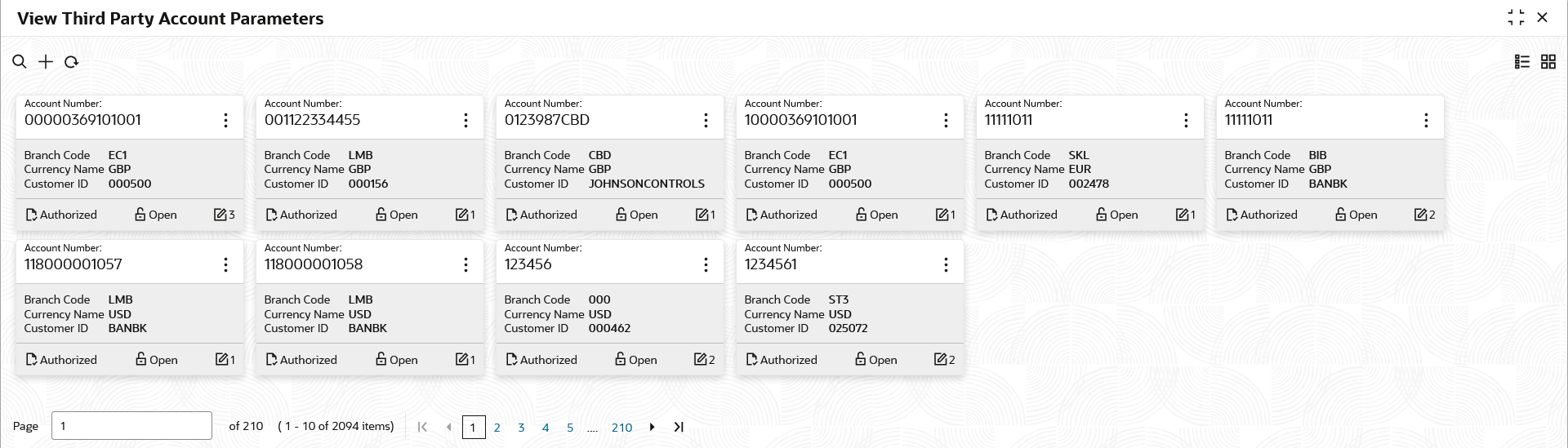 This topic describes the systematic instructions to view the list of configured third party account parameters.