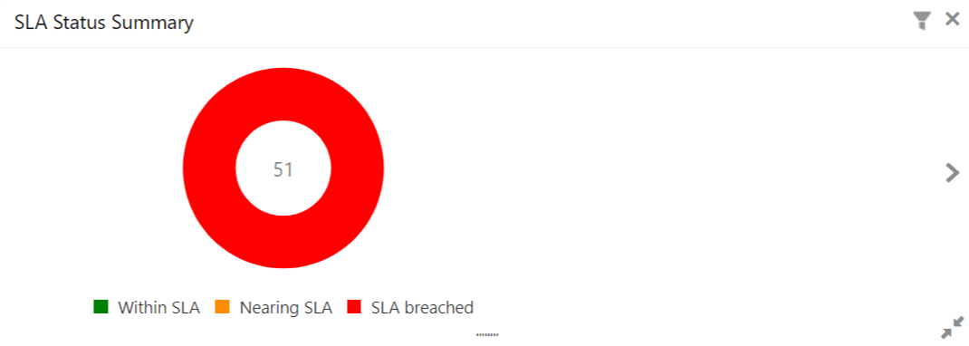 The SLA Status Widget highlights the tasks that are Within SLA (in green), Nearing SLA breach (in amber) and breached SLA (in red)