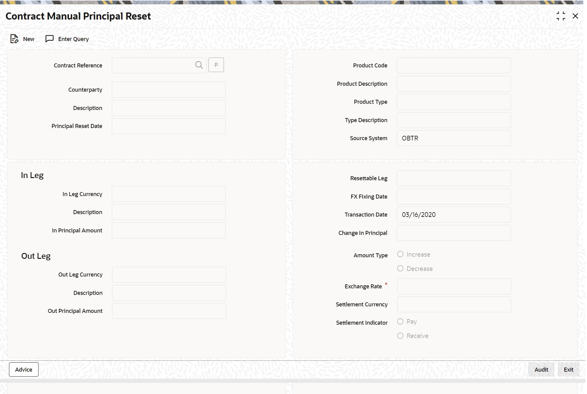 - On the Contract Manual Principal Reset screen, Specify the details as required.