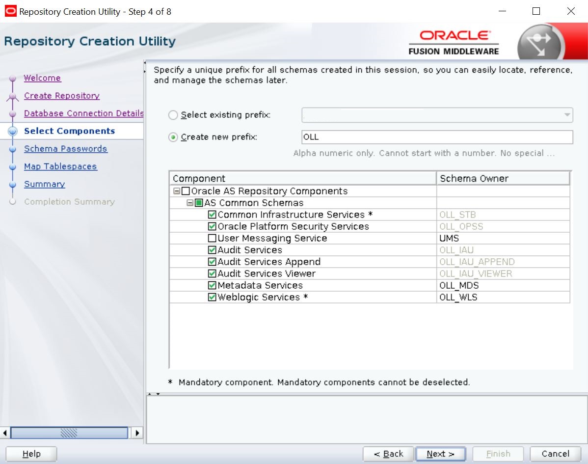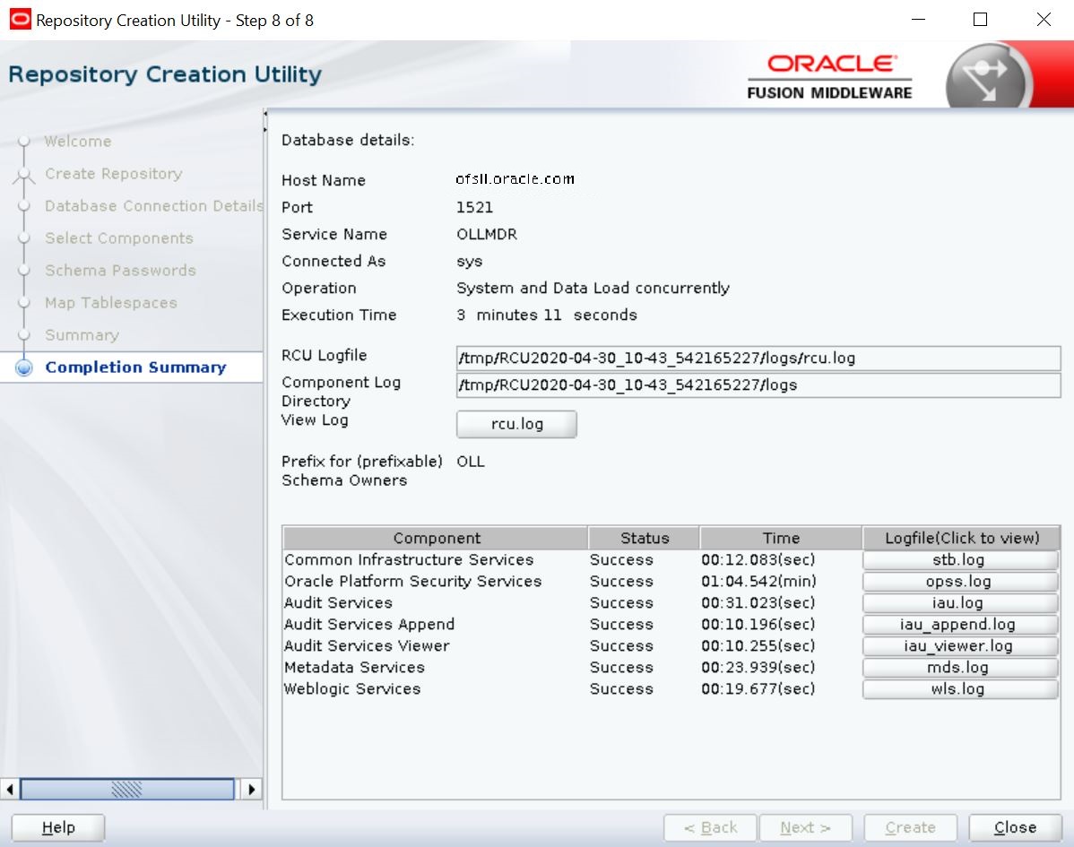 2.1 Creating Schemas using Repository Creation Utility