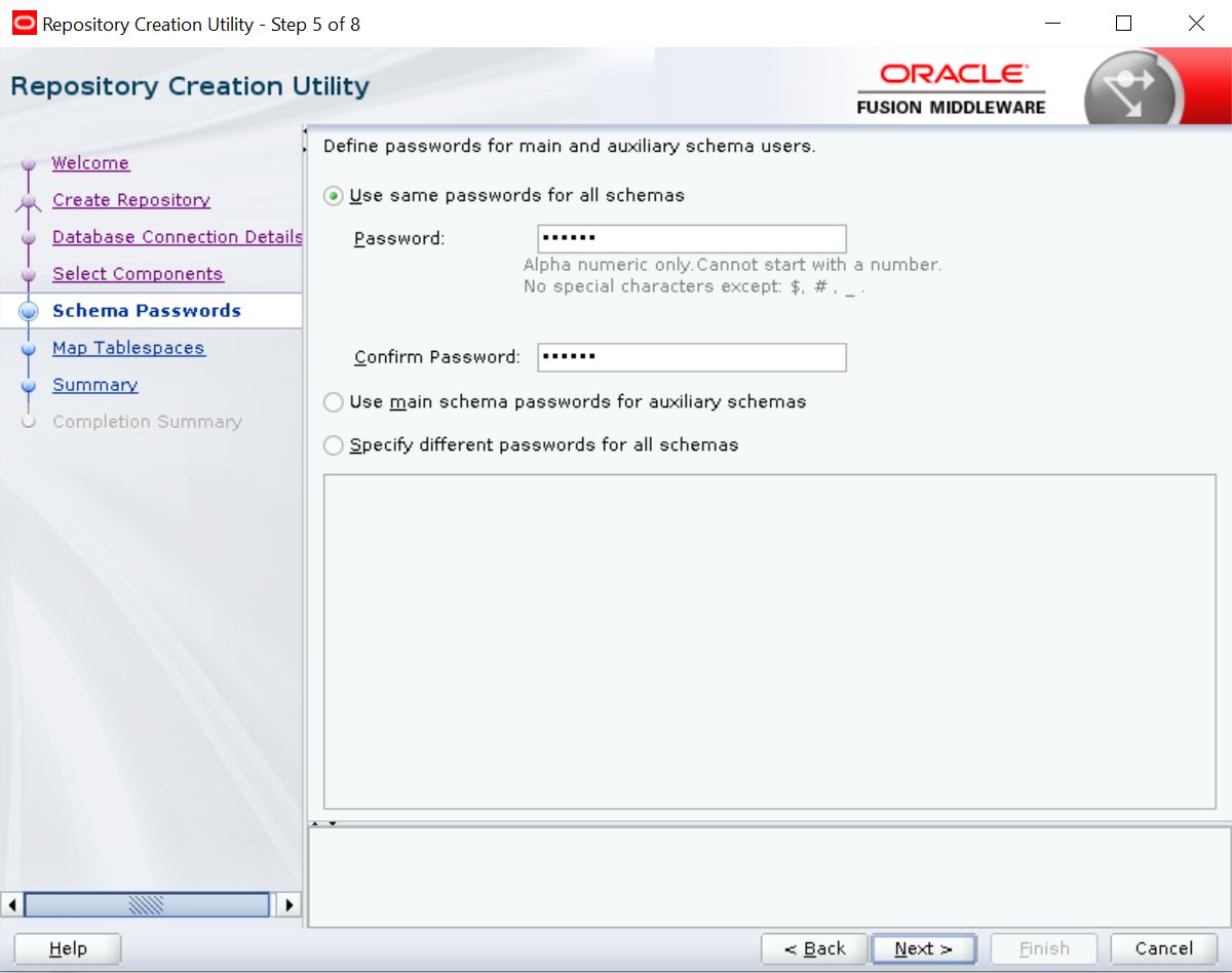 The following section details the steps to create schemas using repository creation utility.