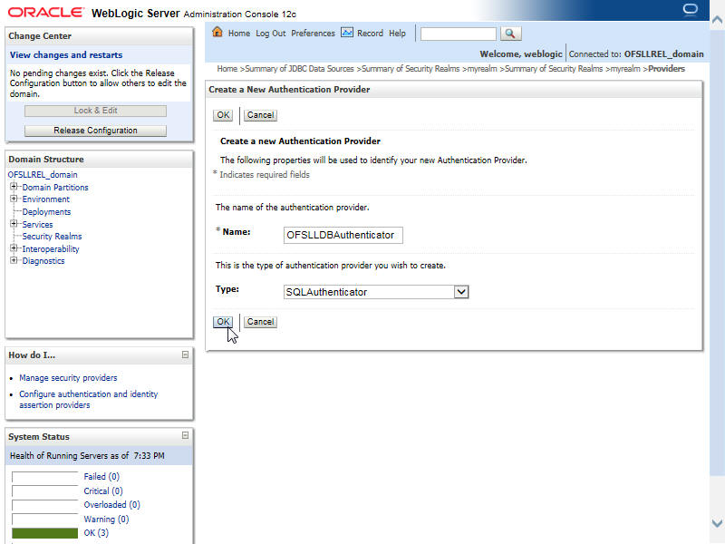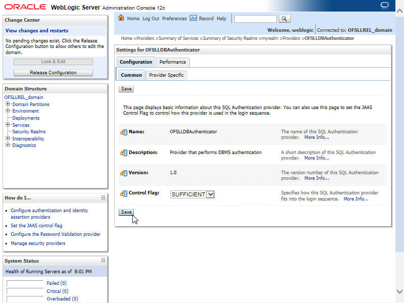 Authentication order should be maintained as mentioned in the above screen. ‘OFSLLDBAuthenticator’ will be displayed as above.