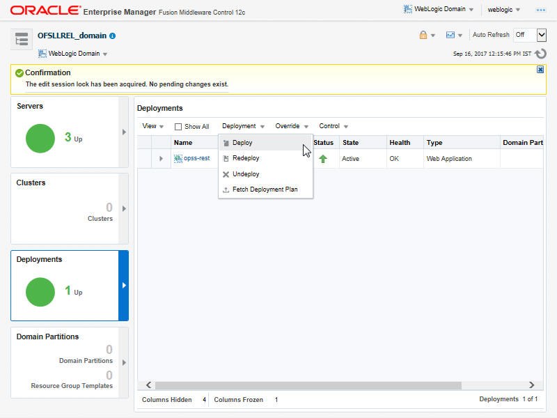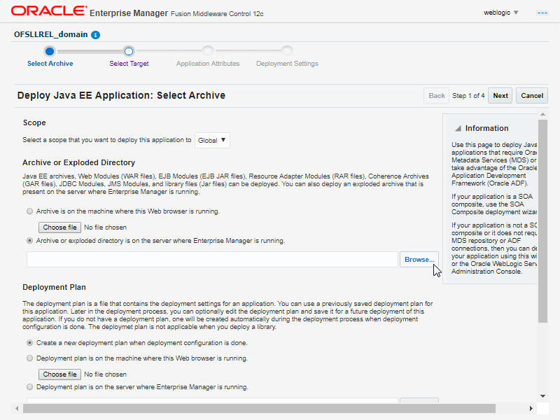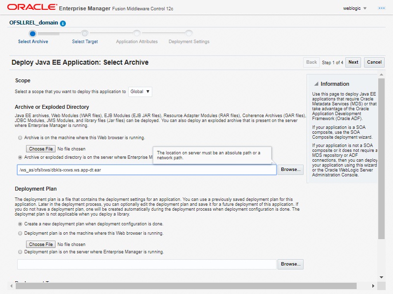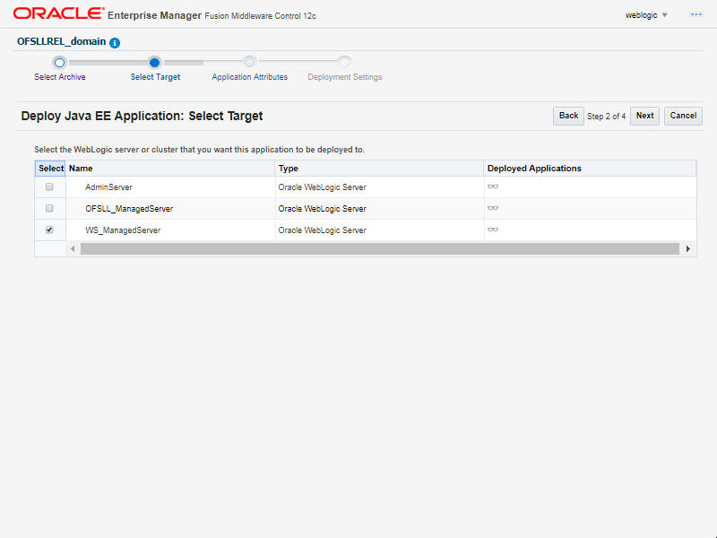 - Expand the weblogic domain present in the left pane. The following window is displayed.