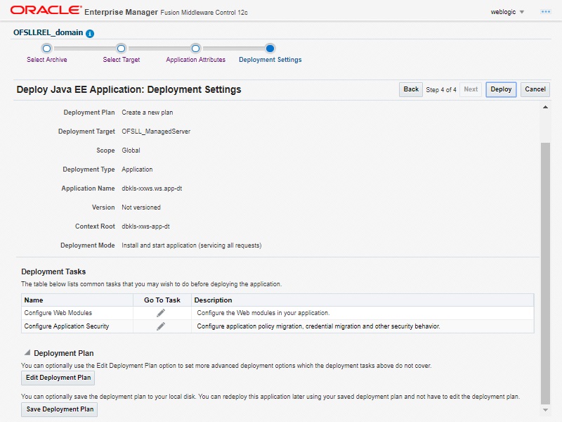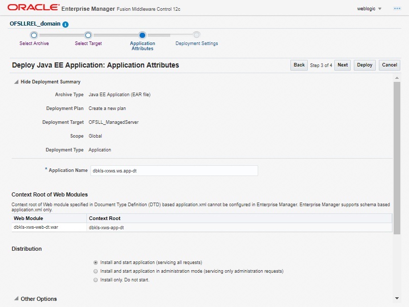 The following section details the steps to be followed for the deployment of WebServices in Enterprise Manager.