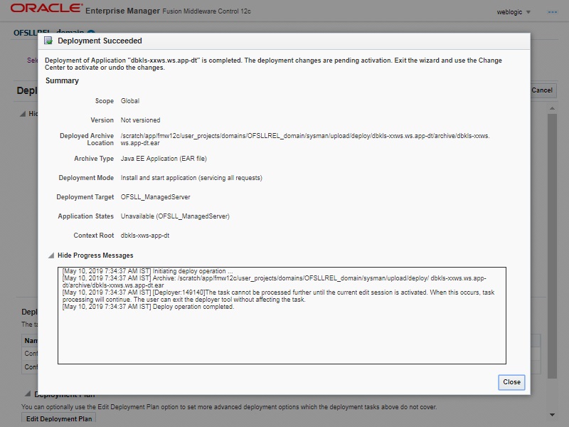- In case the context root has to be changed for the WebServices, it can be changed by editing the application.xml or through the console. To change through console, login to WebLogic Server 12c console (http://hostname:port/console).