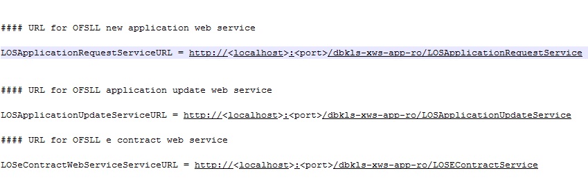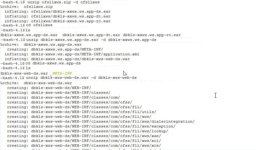 dbkls-xxws.ws.app-dt.ear dbkls-xxws.ws.app-ds.ear dbkls-xxws.ws.app-ro.ear DT Interface: To receive loan application from dealer track DS Interface: To receive edocs application update RO Interface: To receive loan application from route one DT Interface: To receive loan application/deal update from dealer track DS Interface: To receive edocs comment update RO Interface: To receive loan application/deal refresh from route one DT Interface: To receive comments from dealer track DS Interface: To receive edocs location update RO Interface: To receive comments from route one LOSPostStatusRequestService: To post comments to dealer track LOSPostStatusRequestService: To post comments to route one LOSPostStatusRequestService: To post application status to dealer track LOSPostStatusRequestService: To post application status to route one ILOSPostDealerDetailsService: To post dealer details to dealer track ILOSPostDealerDetailsService: To post dealer details to dealer track LOSEContractService: To recieve contract information from RouteOne - Unzip all the ear files present: