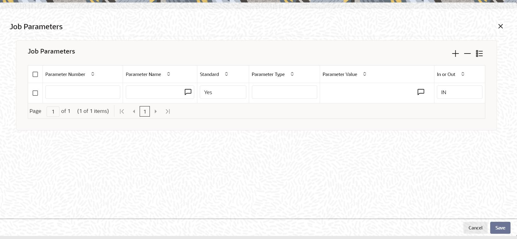 - On Job Parameters screen, specify the details.For more information on fields, refer to the field description table.