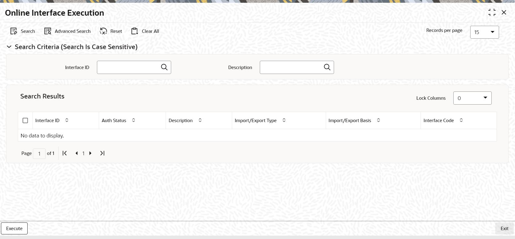 - On Home screen, type UTSONLIN in the text box, and click Next.The Online Interface Execution screen is displayed.