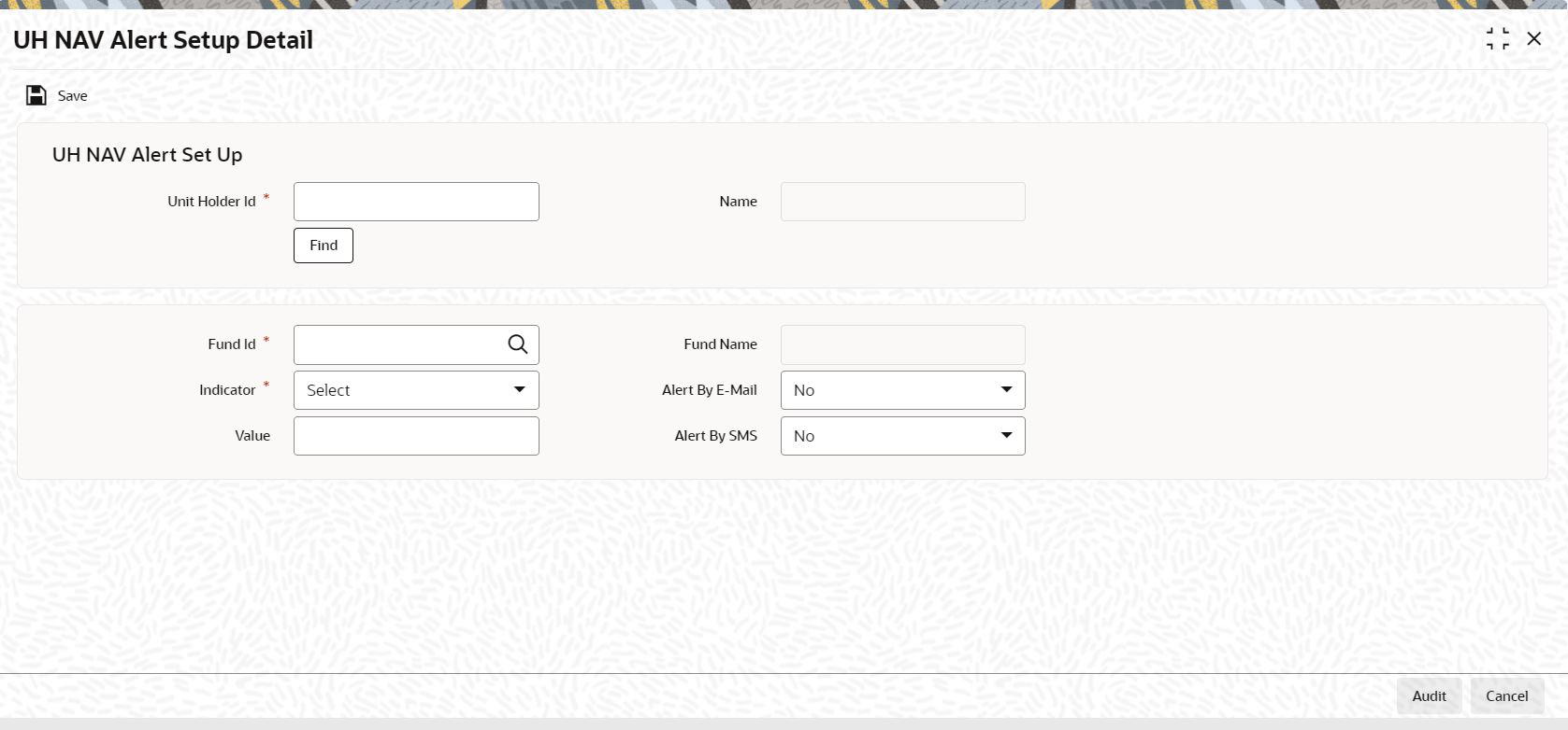 Field Description Attributes Unit Holder ID Specify the unit holder ID. You can query for unit holder ID by clicking Fund button.