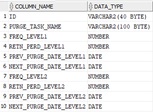 | NEXT_PURGE_DATE_LEVEL1/2 | The Next purge date level1 also gets updated automatically based on the frequency. |