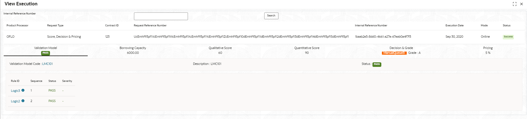 - Under Credit Decision, click Operations. Under Operations, click Execution Summary.The View Execution Summary screen displays.