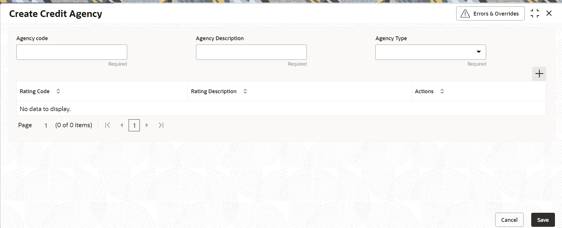 This screen is to configure credit rating agencies as required during Small and Medium Enterprise, Corporate, and Financial Institution Onboarding and Amendment process.