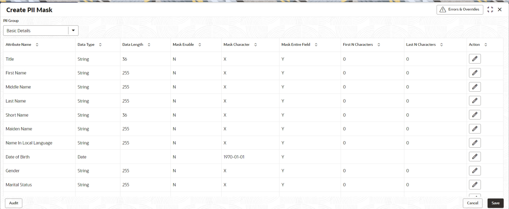 Once the record is authorized by the checker, the user can view the PII Mask Management Configuration.