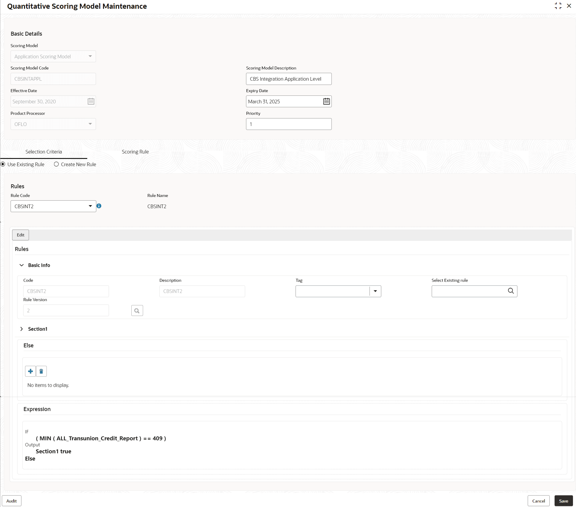 Figure 3-43 Quantitative Scoring Model Maintenance – View