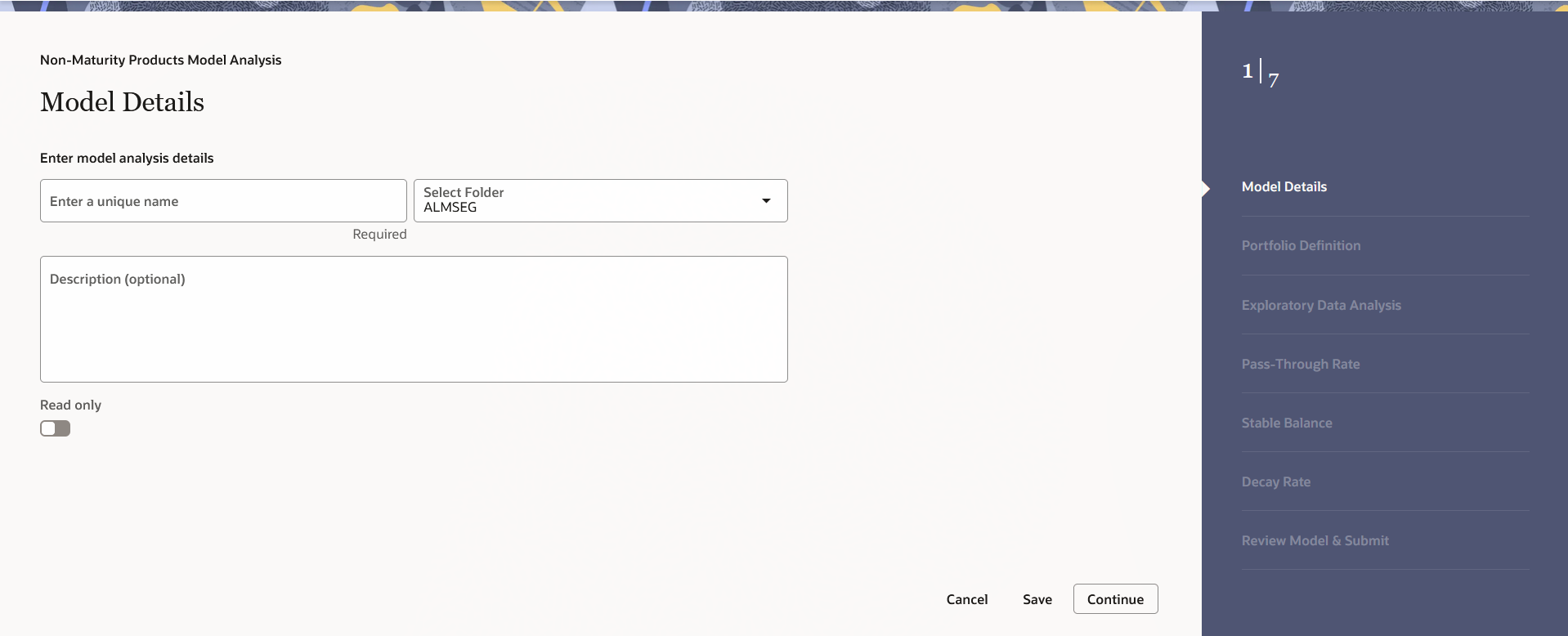 - Name: Name of model. The Non-Maturity Products Model name should be unique. Any special characters are not applicable.