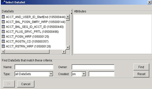 | Attributes | Displays the attributes associated with the selected dataset in the DataSets area |