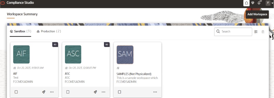 - Choose BD as workspace from the drop-down list (Production workspace).
