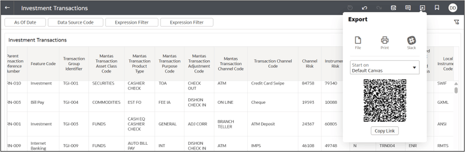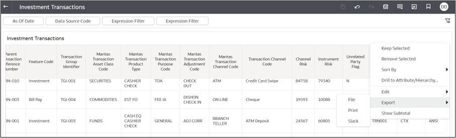 Data visualization (source data or results data) can be exported in various format like excel, csv, PowerPoint and image. You can export the data from the report using multiple methods.