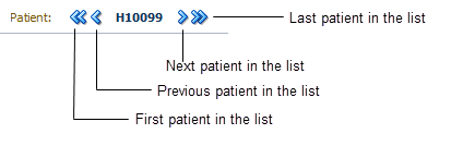 If you have multiple patients queried, you can navigate through the list of patients by using the buttons that embed the patient number, like in the following image: