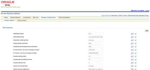 Once the RIB integration environment is configured for use by various retail application, as a sanity test the user may need to verify the integration end points. For RIB on cloud, we can ping-test various webservices consumed by RIB using RIB admin GUI.