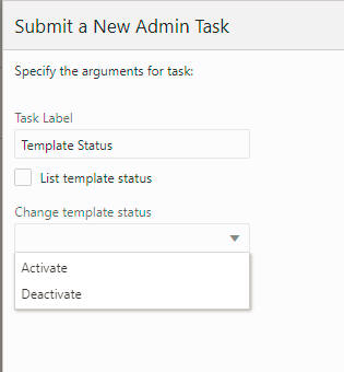 Start by selecting the Submit a New Admin Task template that is attached to the bootstrap application. This opens up the screen shown in Figure 5-63. These are the bootstrap tasks that are available.