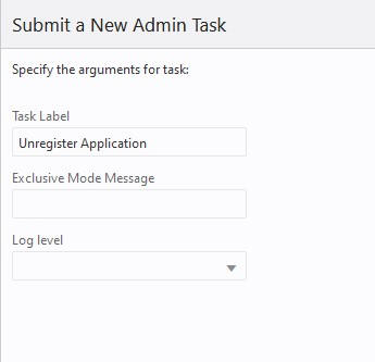 The Unregister Application task is used to undo the steps completed by the Build Application task and take the system back to a bootstrap state. From the bootstrap state, the application can then be built again. If multiple applications are registered, then only one of the applications can be unregistered. This will push only the unregistered application into the bootstrap state, and it can be built again.The other applications will stay in the built state. The bootstrap state is a state that contains only the foundation for building applications.