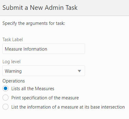 From the list of all available system administration tasks, select Measure Information and click Next.
