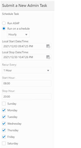 Hourly, Daily, Weekly, Monthly - specify a recurring setting for the task to execute.