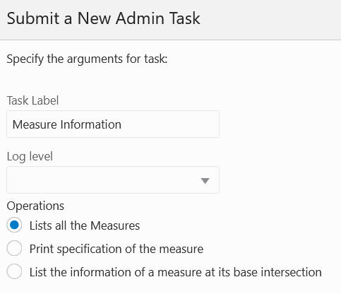 This lists the number of dimensions, logical size, populated size, and density of a measure at its base intersection. When the user selects this and clicks Next, the wizard page used to enter additional arguments is displayed.