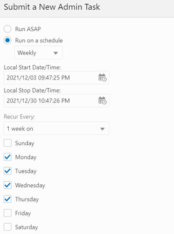 Stop Date/Time - For recurring tasks, specify the time the schedule ends.