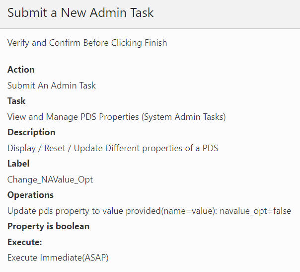 Note that this task is automatically run in offline mode. As a result, all non-administrative users will be logged off and the task will be executed. This prevents users from running any batch or workbook operations while these settings are updated in the application.
