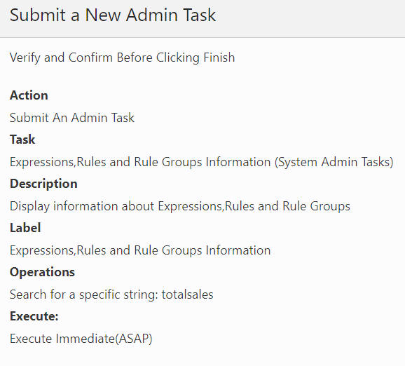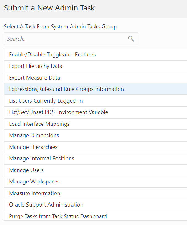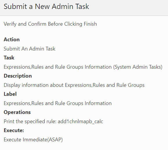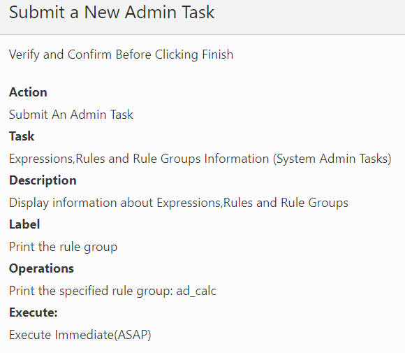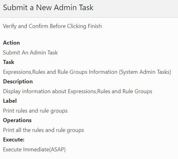 From the list of all available system administration tasks shown in Figure 12-17, select Expressions, Rules, and Rule Groups Information and click Next.