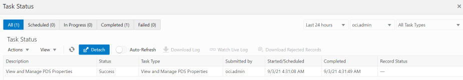 Select the task and click Watch Live Log to view the logs, as shown in Figure 12-7. Alternatively, click Download Log to download the log file.