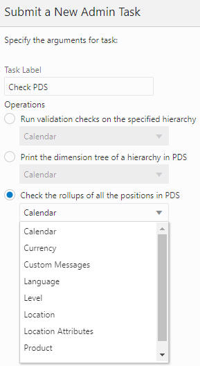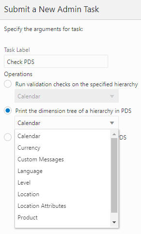 The user must provide the hierarchy for the validation to be conducted. As shown in Figure 3-13 and Figure 3-14, the user can provide the dimension level to further limit the validation. If the value is left blank, the operation will perform the validation on all dimensions of the hierarchy.