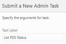 The List PDS Status task, shown in Figure 3-18, does not have any additional parameters. It provides the current state of PDS regarding operation and application consistency.