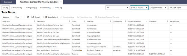 It can be accessed from the menu by clicking Administration -> Task Status Dashboard for Planning Data Store.