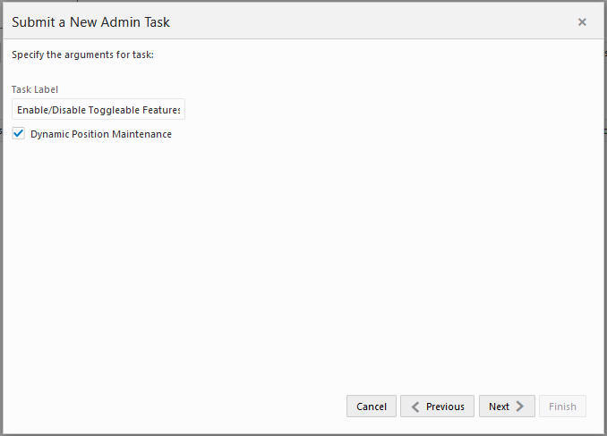This task can be used to enable or disable certain RPASCE features. The current state of these features can be determined from the state of the check boxes on the screen. For example, the feature dynamic position maintenance (DPM) is enabled by default for most applications. Users can disable this feature and later re-enable it by using the check box next to the feature name and submitting this OAT task.