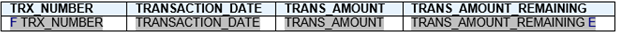 Clicking Next presents the list of available fields to appear as column in the table. Individually select Trx Number, Transaction Date, Trans Amount, and Trans Amount Remaining in the left hand pane, clicking > to add them to the right hand pane (the order of the selected columns can be changed using the up and down buttons).