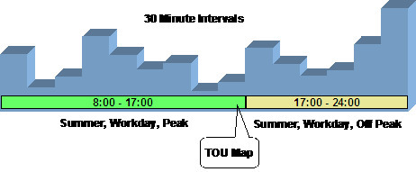 Many customers choose not to price their interval data using interval prices. Time of Use Mapping enables a customer to map out time of use periods for their usage. This option for interval data might be preferred because:
