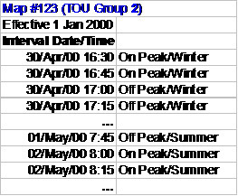 The time period definitions for a classic TOU Map indicate the TOU code for a given date and time.