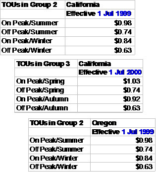The TOU prices are defined for the combination of characteristic and TOU Group. In the examples below, a bill factor's characteristic is State. Also note that the effective date of the prices are the same for all time of use codes. If the price of any TOU value changes, then a new set of prices for all TOU codes must be entered.