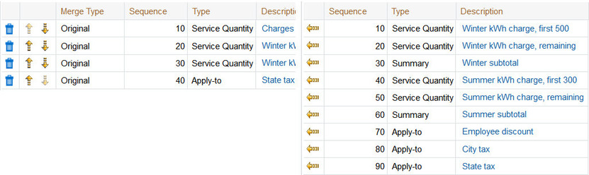 After saving, the second service quantity rate component is renumbered and the State tax rate component will reflect the renumbering in the cross-reference and will not include the rate components that were not copied.