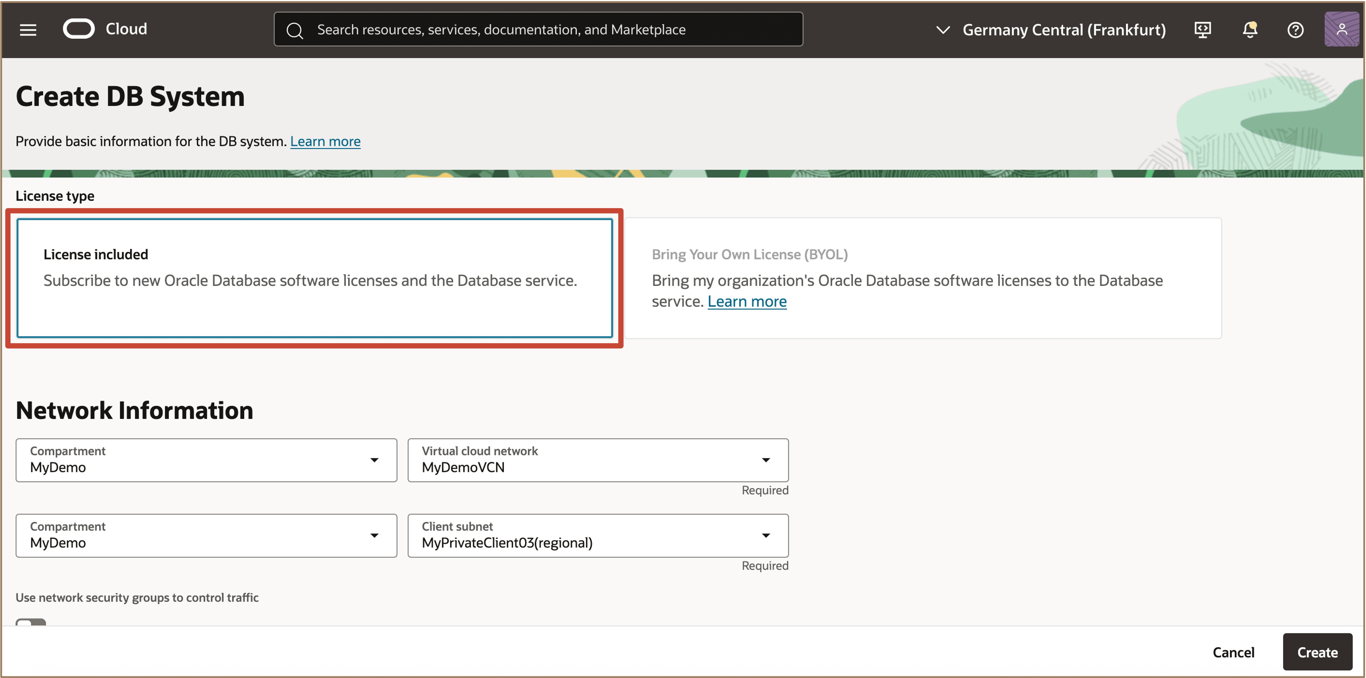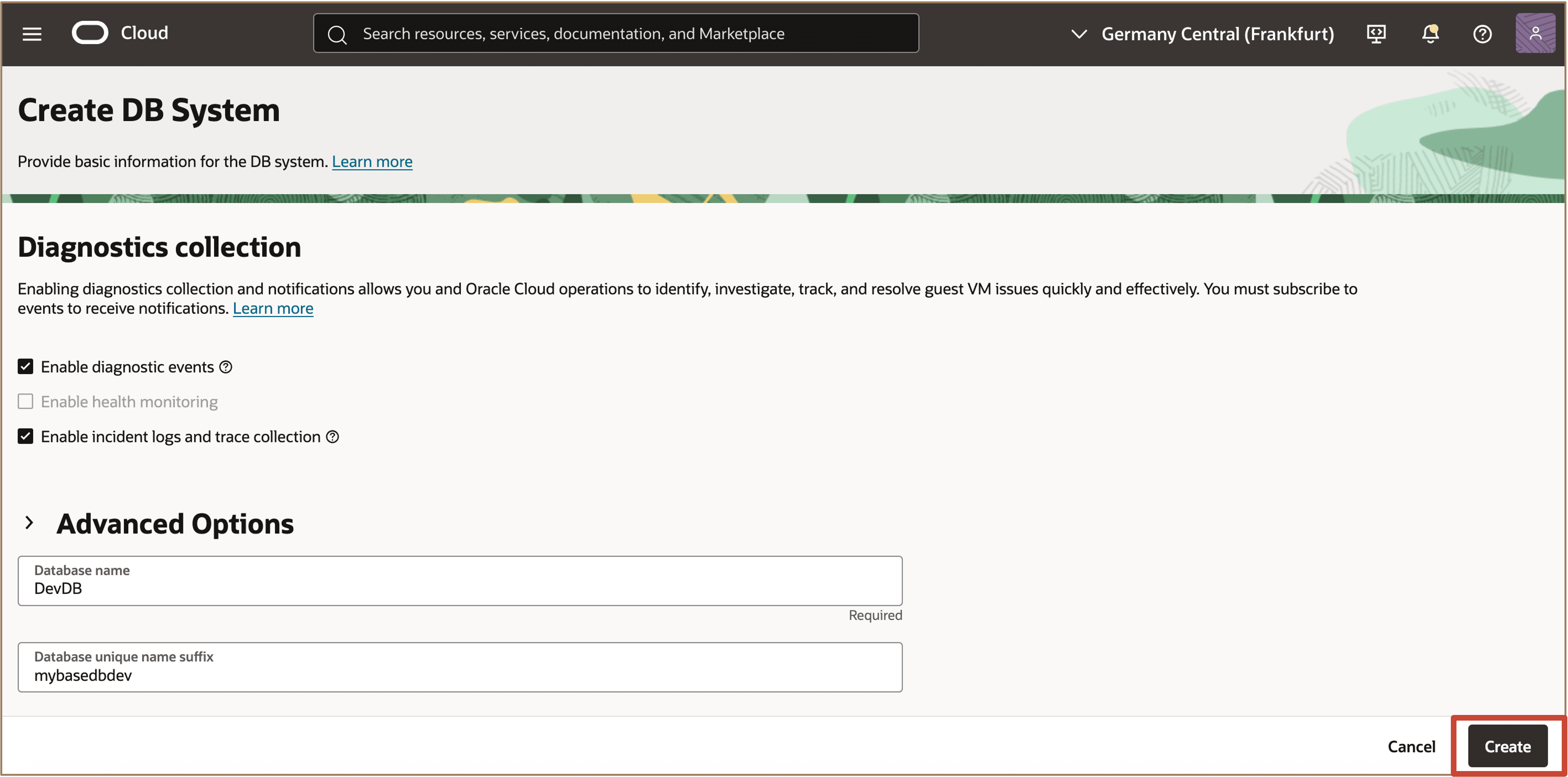 - Create an Enterprise Edition-Developer DB System on Oracle Base Database Service.