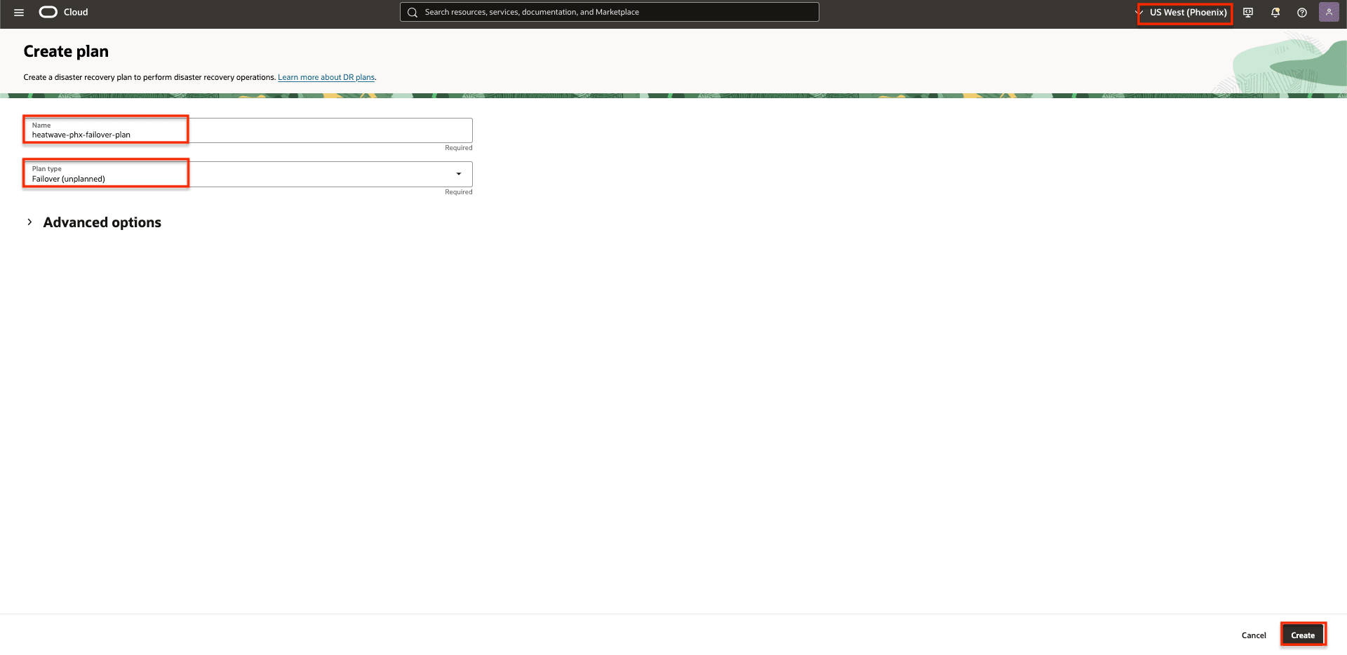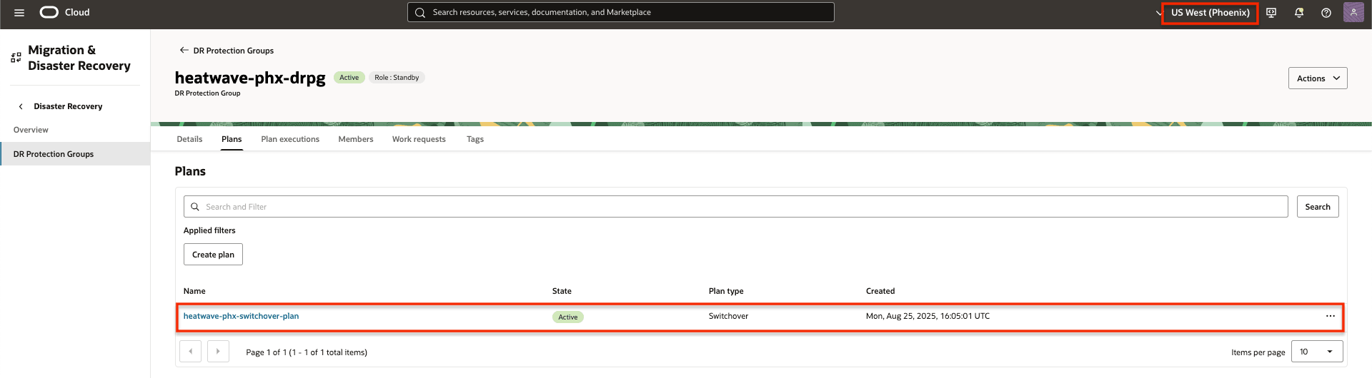 In this task, we will create the initial switchover and failover plans associated with the standby DR protection group in Region 2 (Phoenix).