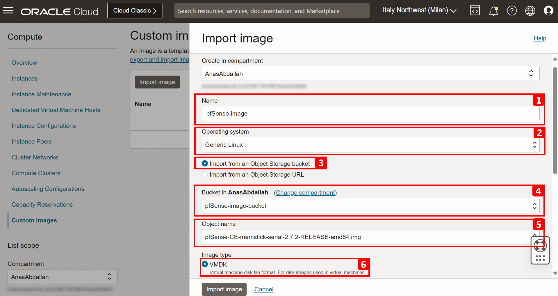 We have uploaded the pfSense image. Now, we need to create an OCI custom image from it. This custom image will be used to create the pfSense firewall instance.