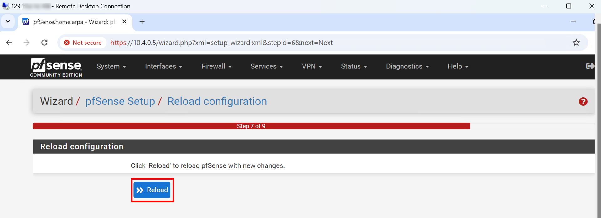 We need to do the initial installation and set up of the pfSense firewall. We already have the running instance.